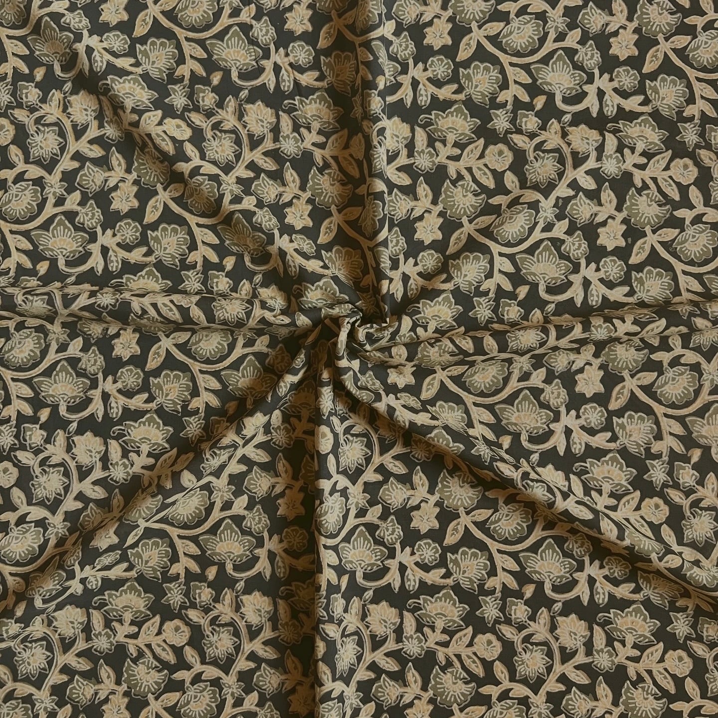 (残り2m)インド綿 アジュラックプリント生地 [250521]
