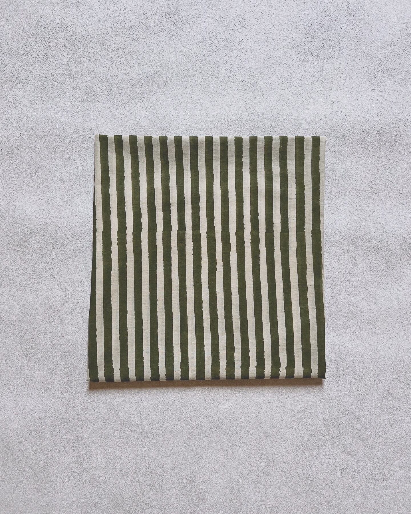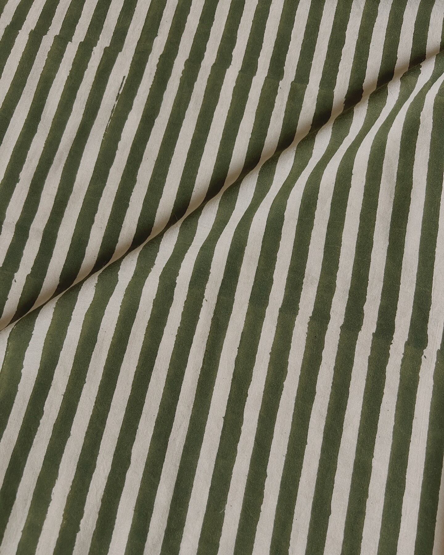 (残り2.5m)インド綿 ハンドブロックプリント生地 [250815]カーキ色ストライプ
