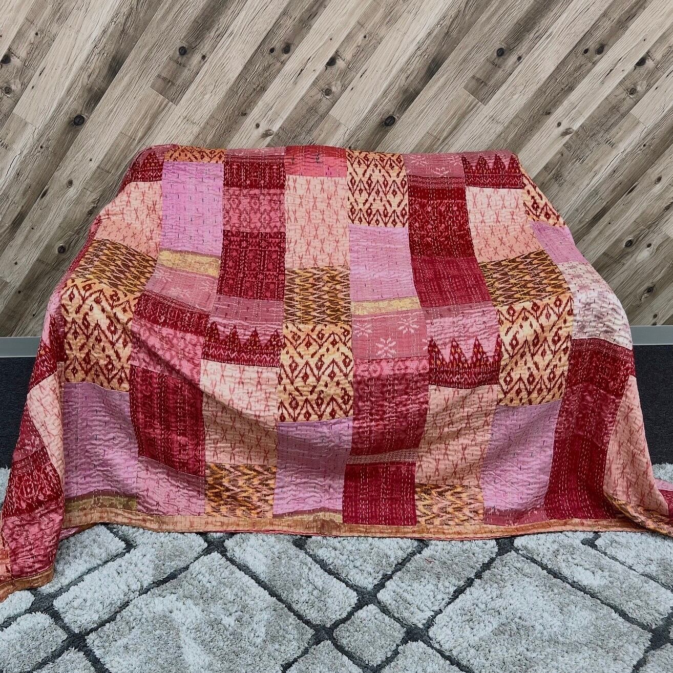 《1/4サイズから》【オールドシルクサリーキルト】A