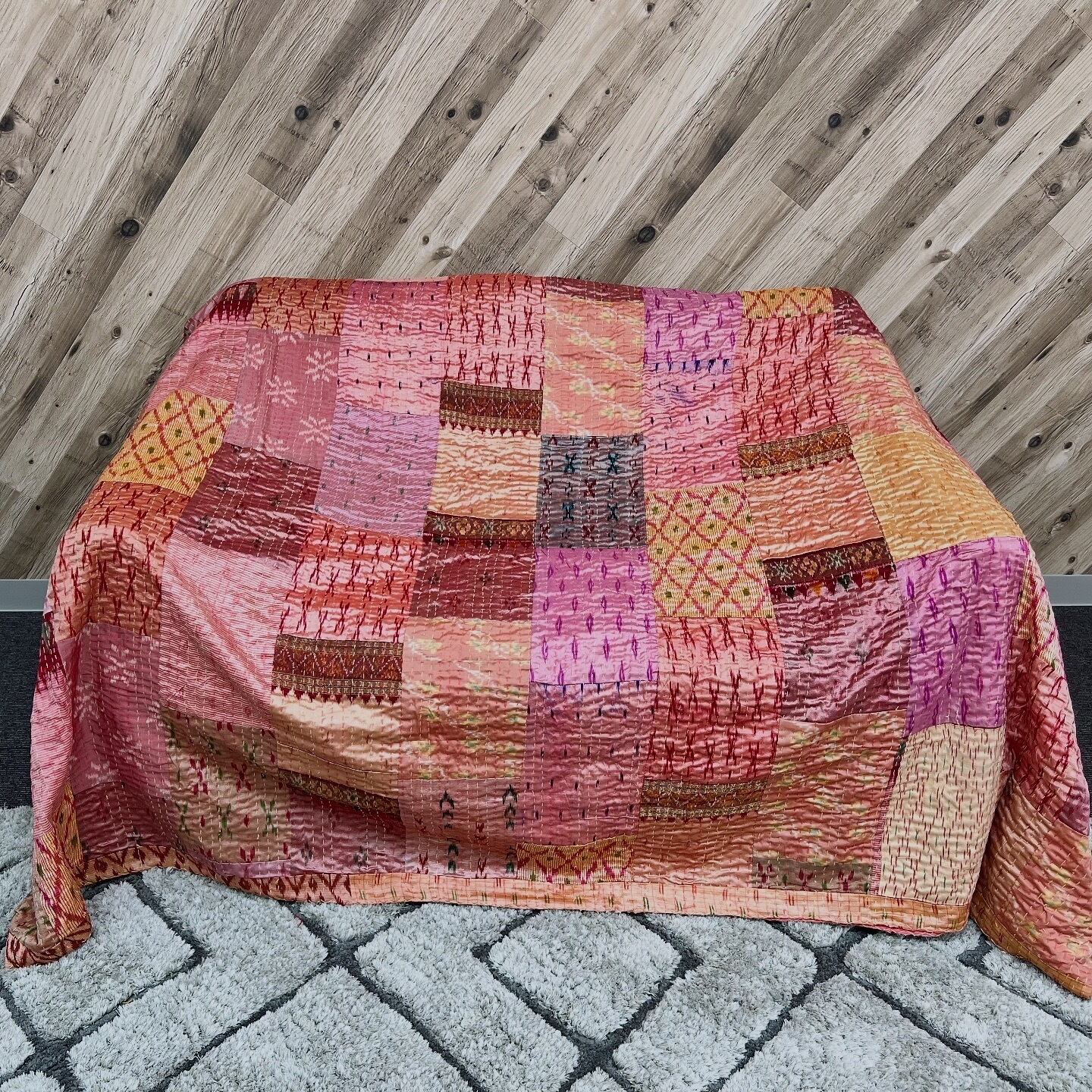 【オールドシルクサリーのパッチワークキルト】