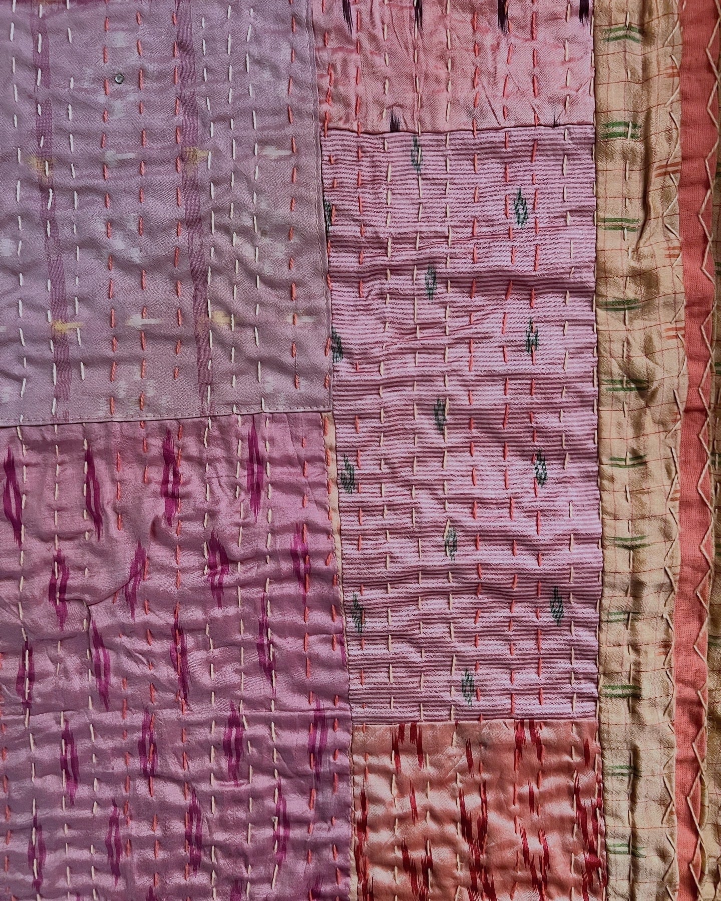 古いシルクサリーを集めたものをパッチワークして、