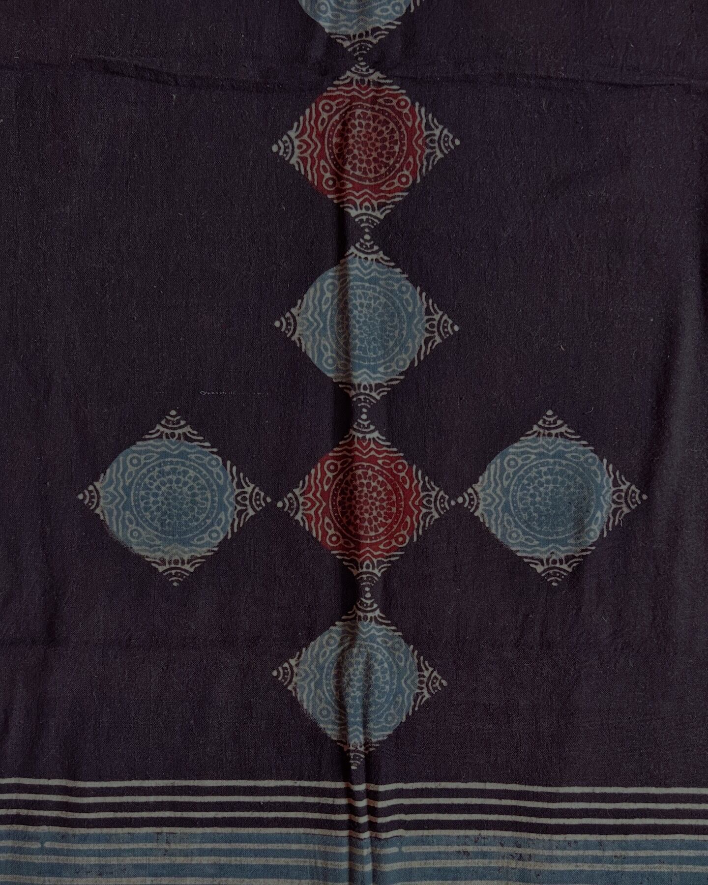 オーガニックのカラコットン生地にブロックプリントされています。(アジュラックプリント)