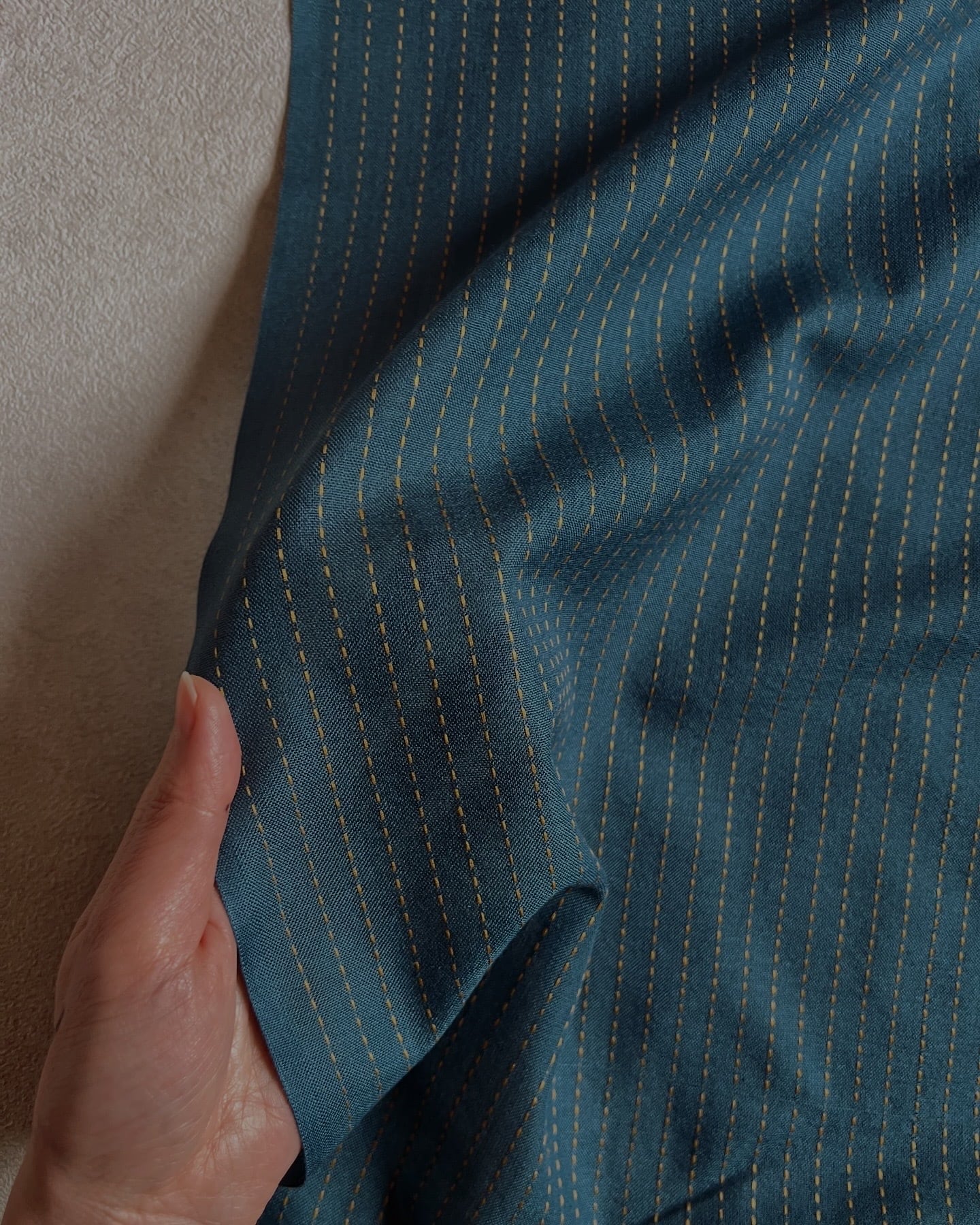 普段のブロックプリント生地に使われているコットンキャンブリックより太い糸で織られていますが、ゆったり織られているので透け感はあります。