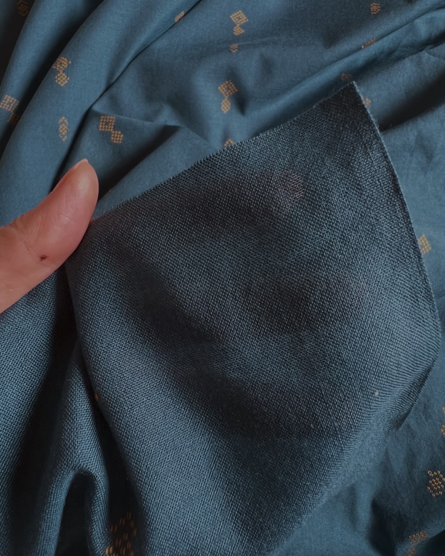 普段のブロックプリント生地に使われているコットンキャンブリックより太い糸で織られていますが、ゆったり織られているので透け感はあります。