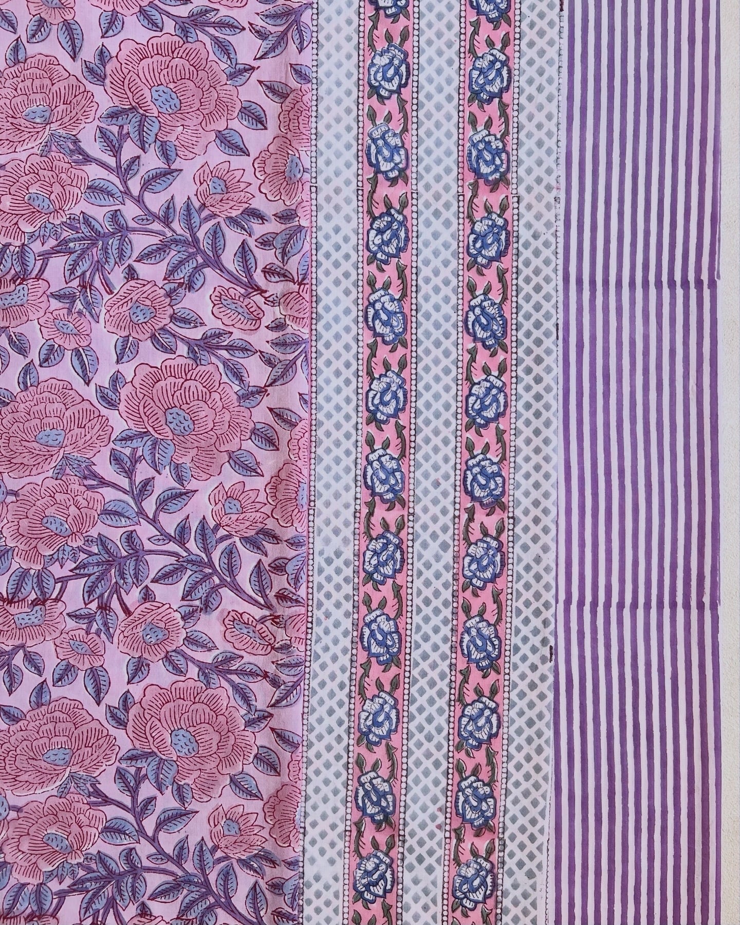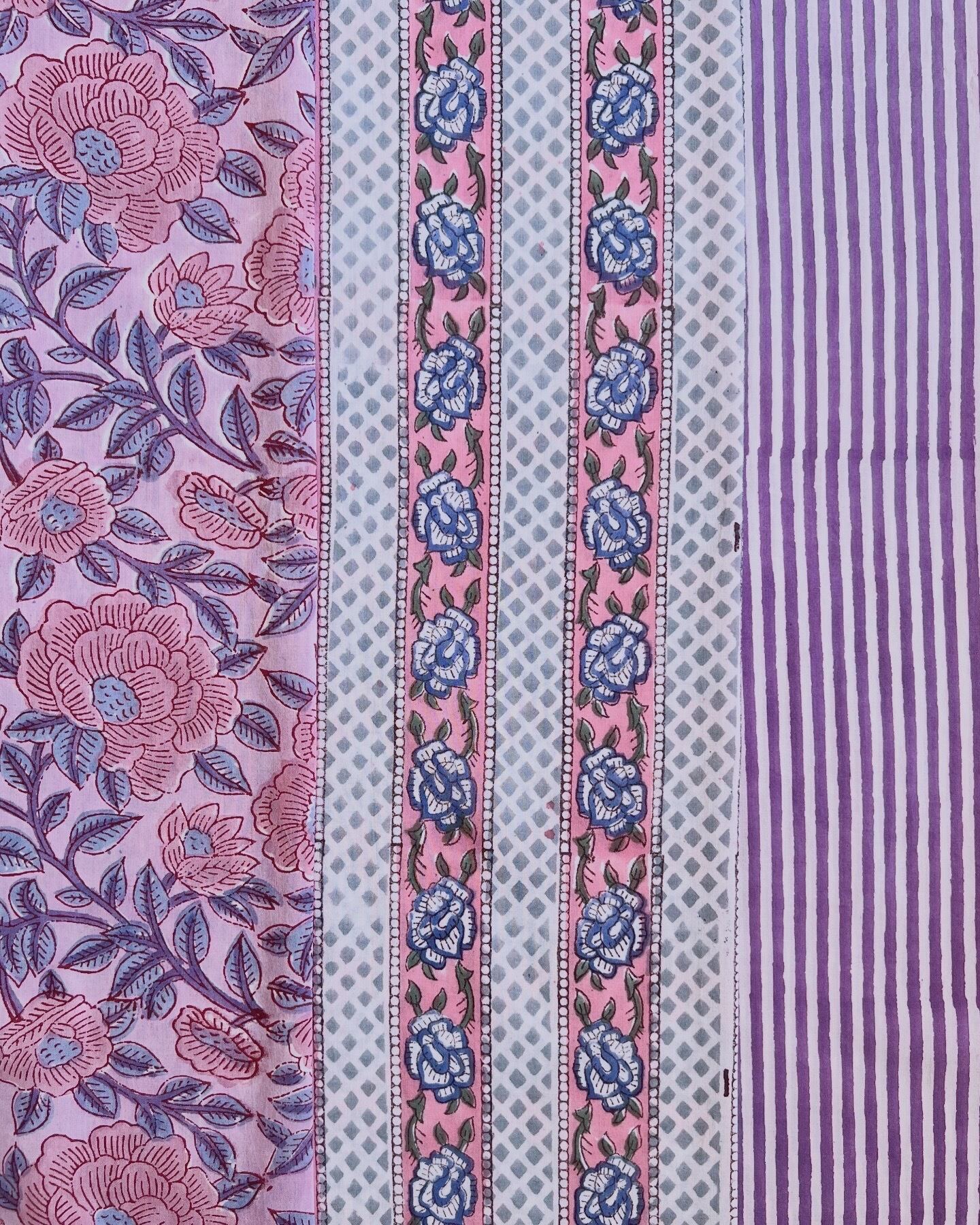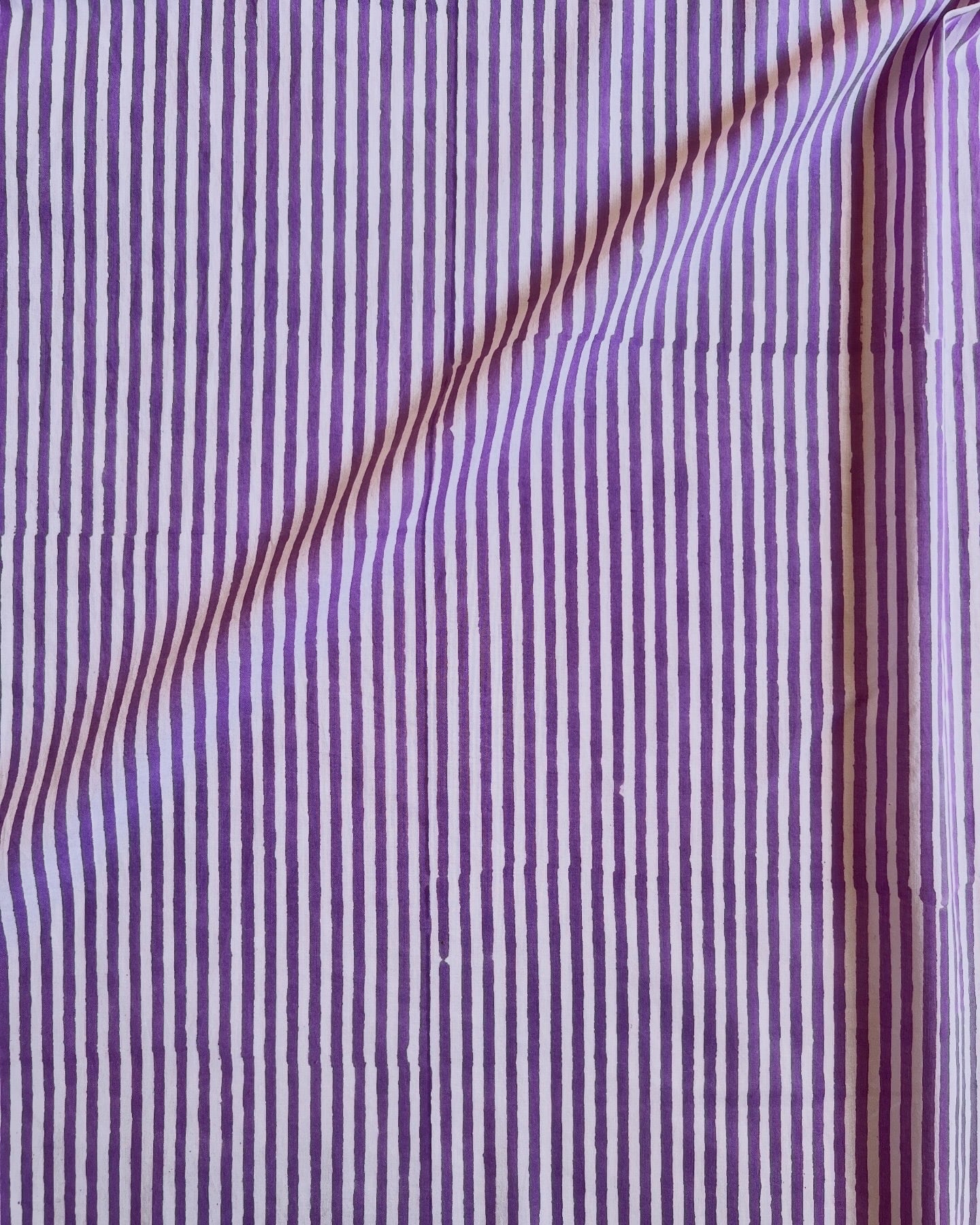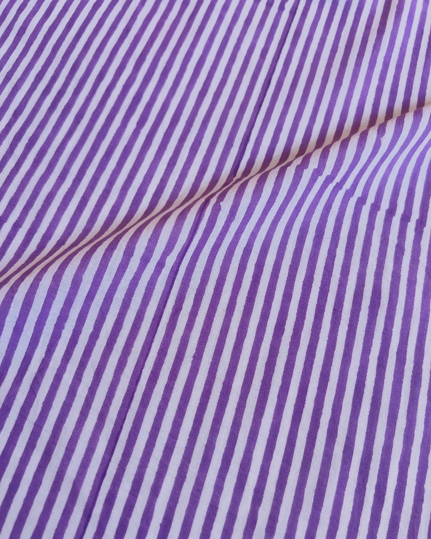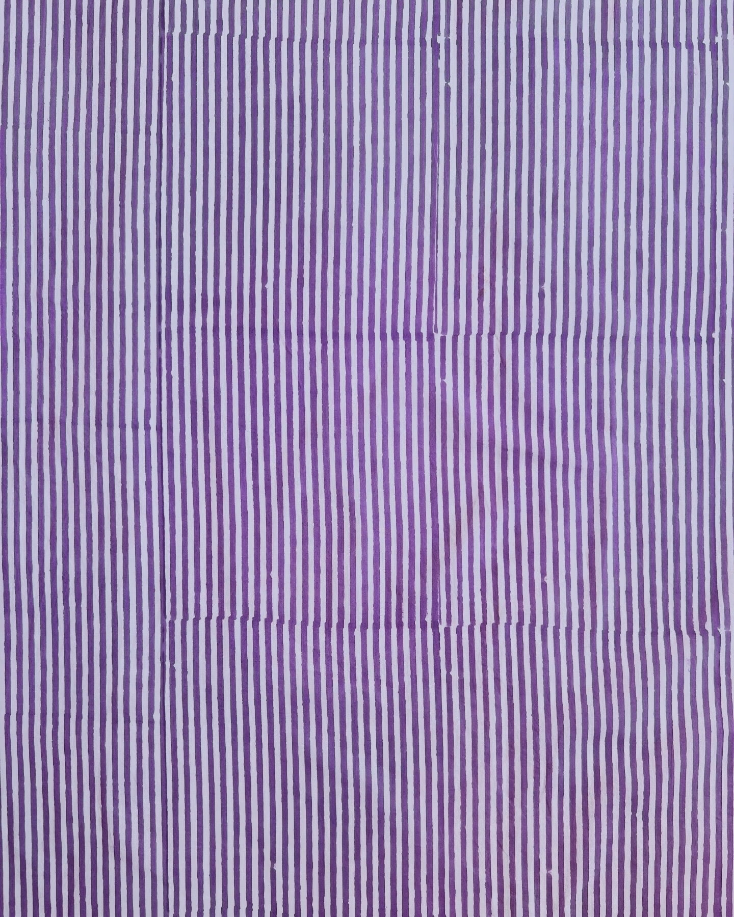 インド綿 ハンドブロックプリント生地 [260211]パープルのストライプ