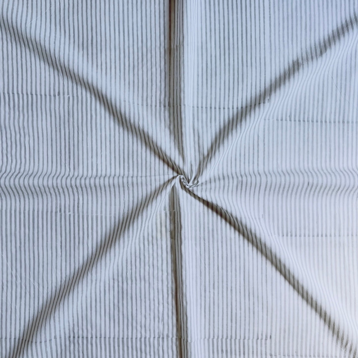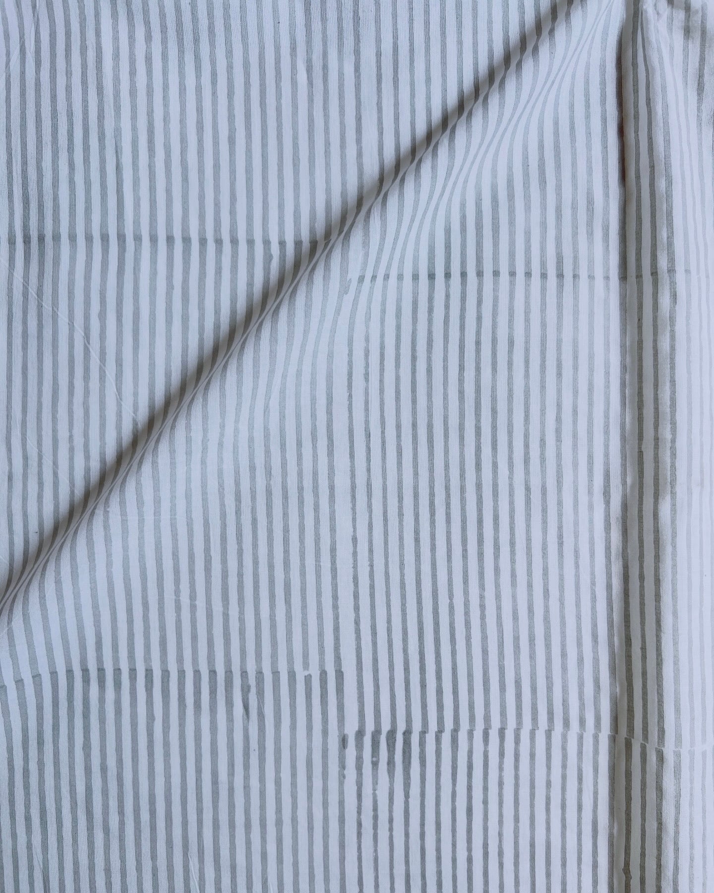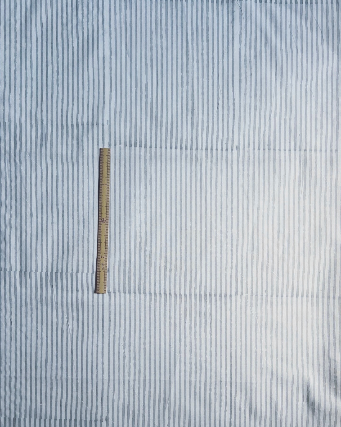 インド綿 ハンドブロックプリント生地 [260404]ライトグレーのストライプ