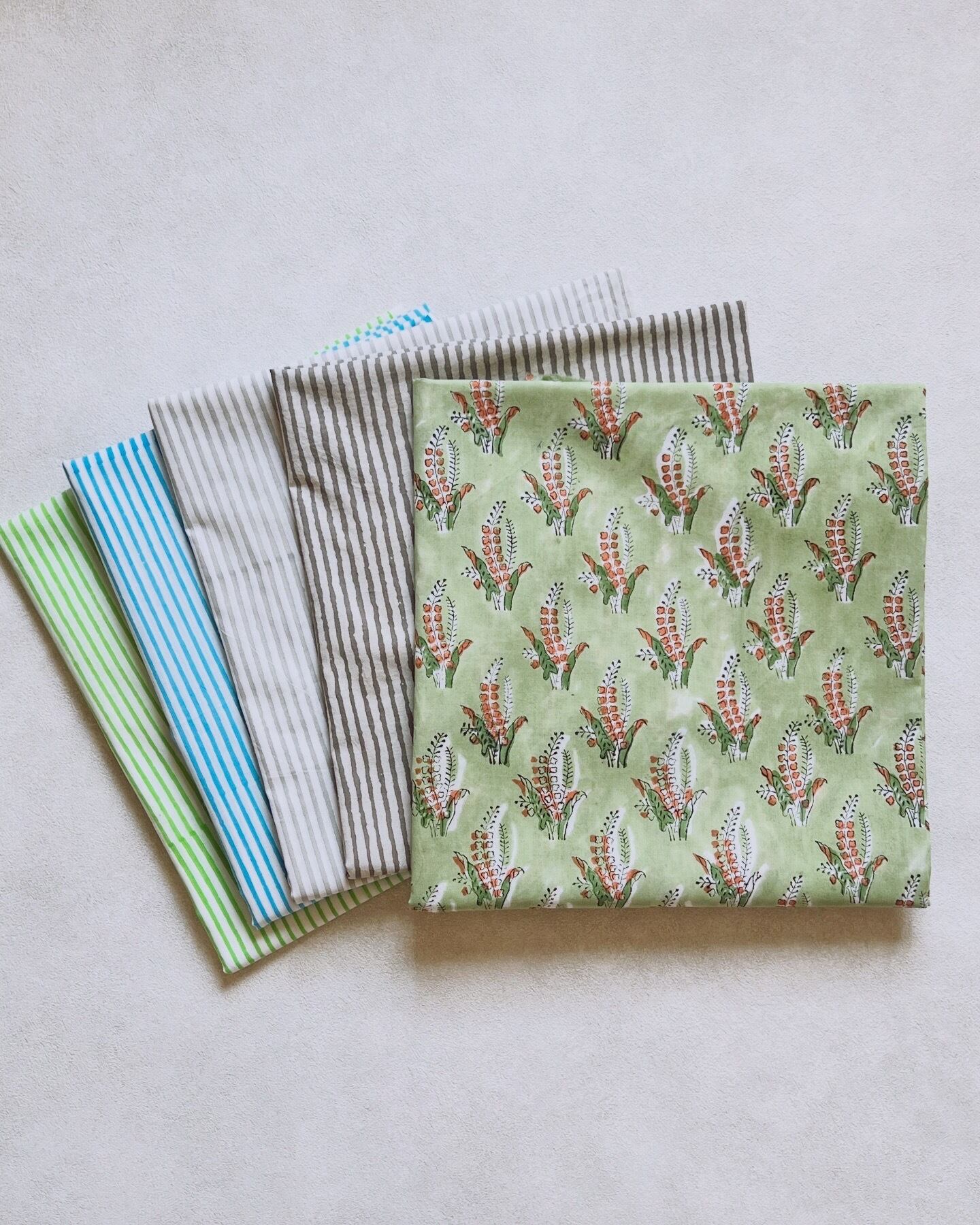 インド綿 ハンドブロックプリント生地 [260407]ダブ染めのストライプ